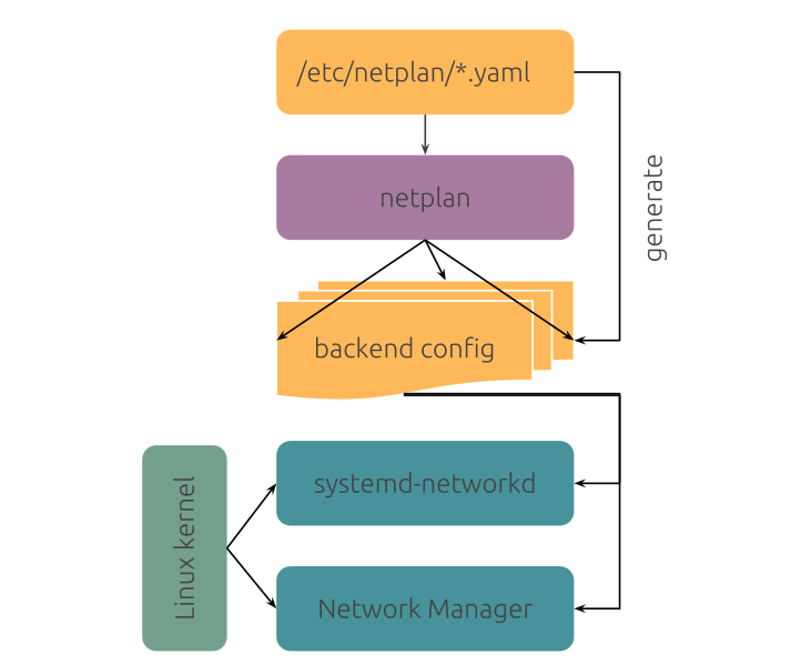 nic 인터페이스 설정파일은 /etc/netplan 디렉토리에 존재하며, 리눅스 커널의 networkd 와 network manager 로 renderer 값을 갖는다.